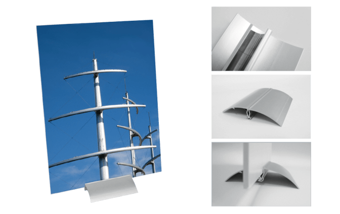 I priset ingår skylt i 5 mm. PVC foam och 90 mm. bred skyltfot i borstad aluminium. Den passar utmärkt för exponering i butiker eller receptioner. Skylten spänner man enkelt fast i skyltfoten utan verktyg.