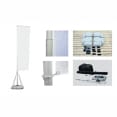 Den här 500 cm höga jätten syns på alla platser och i alla väder. Event Flagpole har en mast på sidan och en upptill som gör att ditt motiv hålls utsträckt för maximal synlighet. När flaggan är rak så är det garanterat att ditt budskap syns bra även när det blåser. Flaggan fästs på ställningen med hjälp av öljetter och ett förstärkt kantband i vitt. Ställningen är tillverkad i aluminium och har en rejäl fot som du kan fylla med vatten eller sand för extra stabilitet. Det medföljer även två transportväskor. Tygvepa i Polyglans 115 gr. eller Air Polyglans 115 gr.