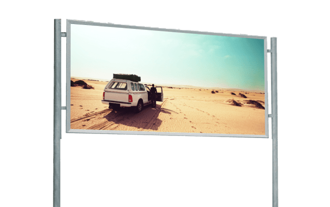 Snäppram när du vill synas från ett längre håll. Trycket byter du enkelt tack vare lockprofilen på 70 mm som snäpper vepan på plats, kraftig bottenprofil och ryggen består av en korrugerad plåt.