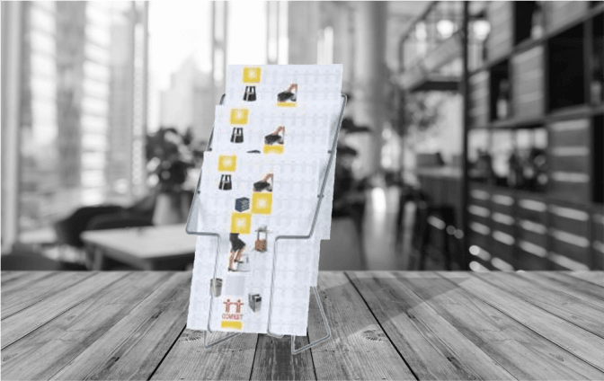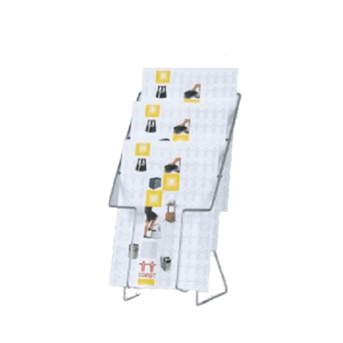 Ett enkelt och prisvärt broschyrställ för eleganta presentationer, bordsmodell för broschyrer eller lösblad i A4 storlek.