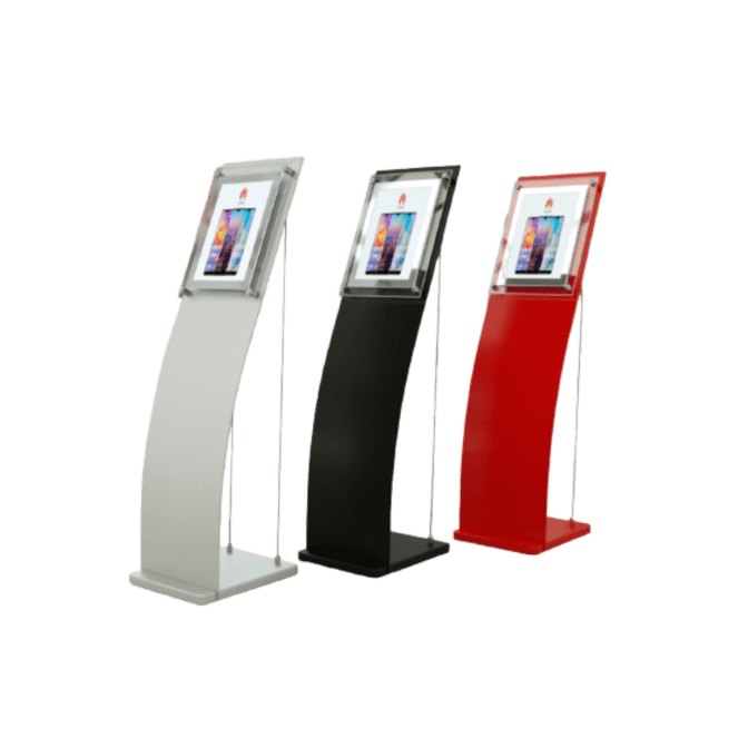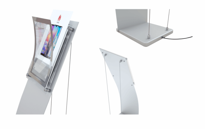 Exklusivt infoställ med LED-belyst akryl i toppen med plats för A4 information. Stilfull presentation för ert budskap i olika miljöer som reception, hotell,
